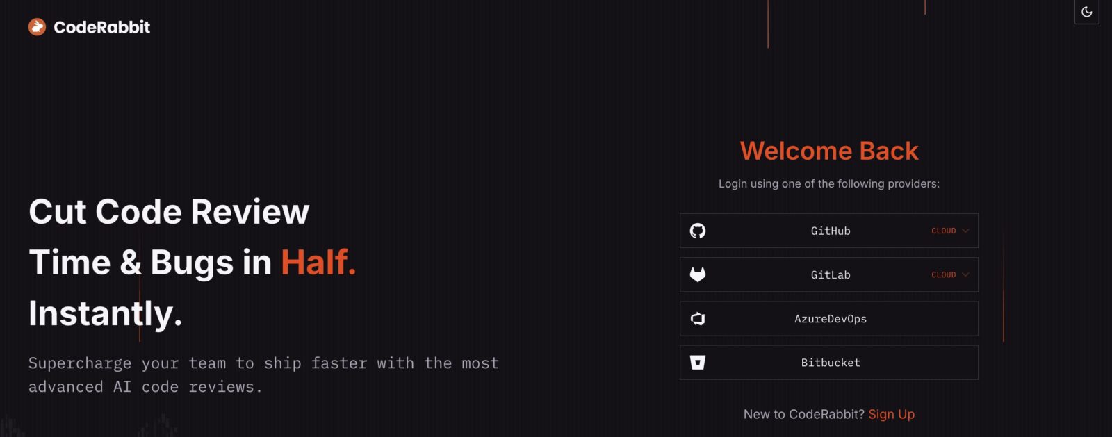 インストール後、サイドバーにCodeRabbitのアイコンが表示されるのでクリックします。ログインを促されるので、GitHub、GitLab、Azure DevOps、Bitbucketのいずれかのアカウントでログインします。